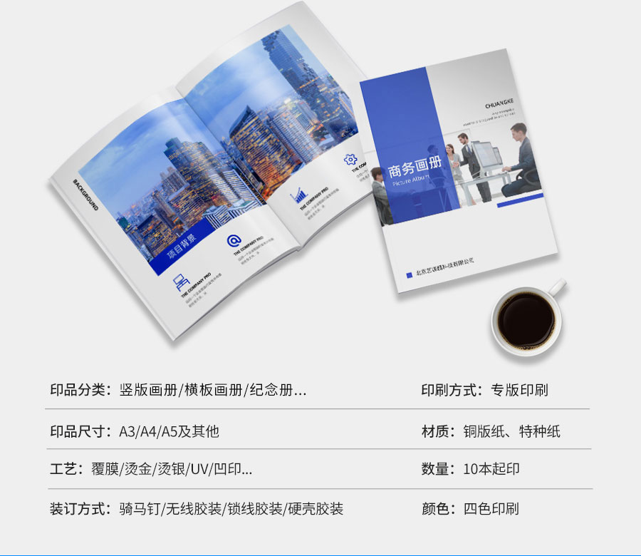 專(zhuān)業(yè)設計制作企業(yè)電子宣傳冊、印刷制作產(chǎn)品手冊、彩頁(yè)等,有銅版紙封面250G/300G/350G過(guò)啞膜或光膜內頁(yè)采用:128G/157G或200G銅版紙裝訂樣式分為:精裝、平裝、線(xiàn)裝、騎馬訂裝
