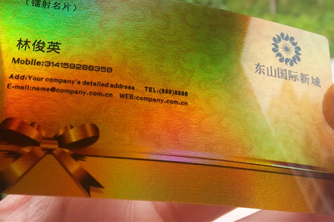 0.38mm厚度高檔珠光鐳射PVC名片,表面采用激光鐳射效果